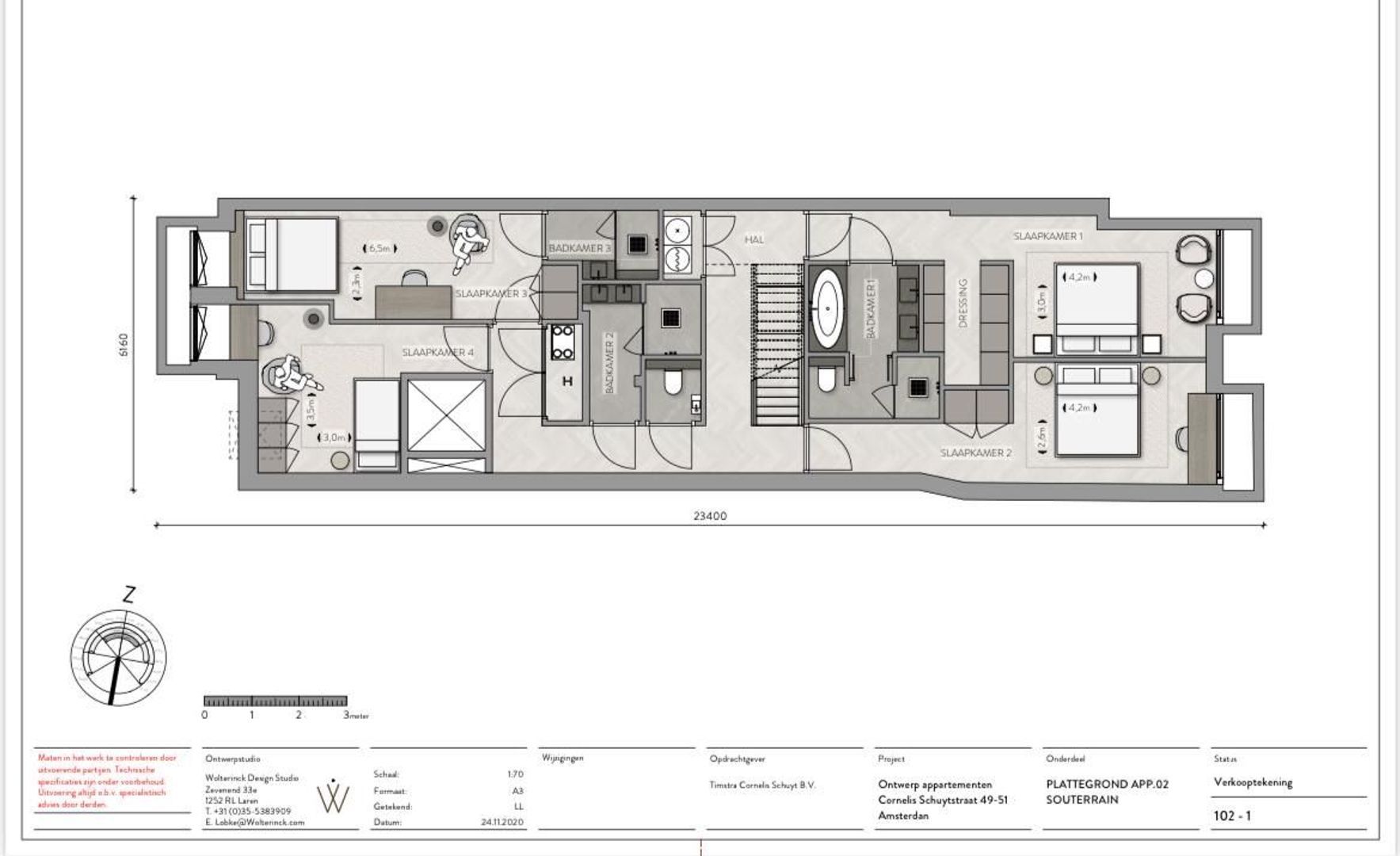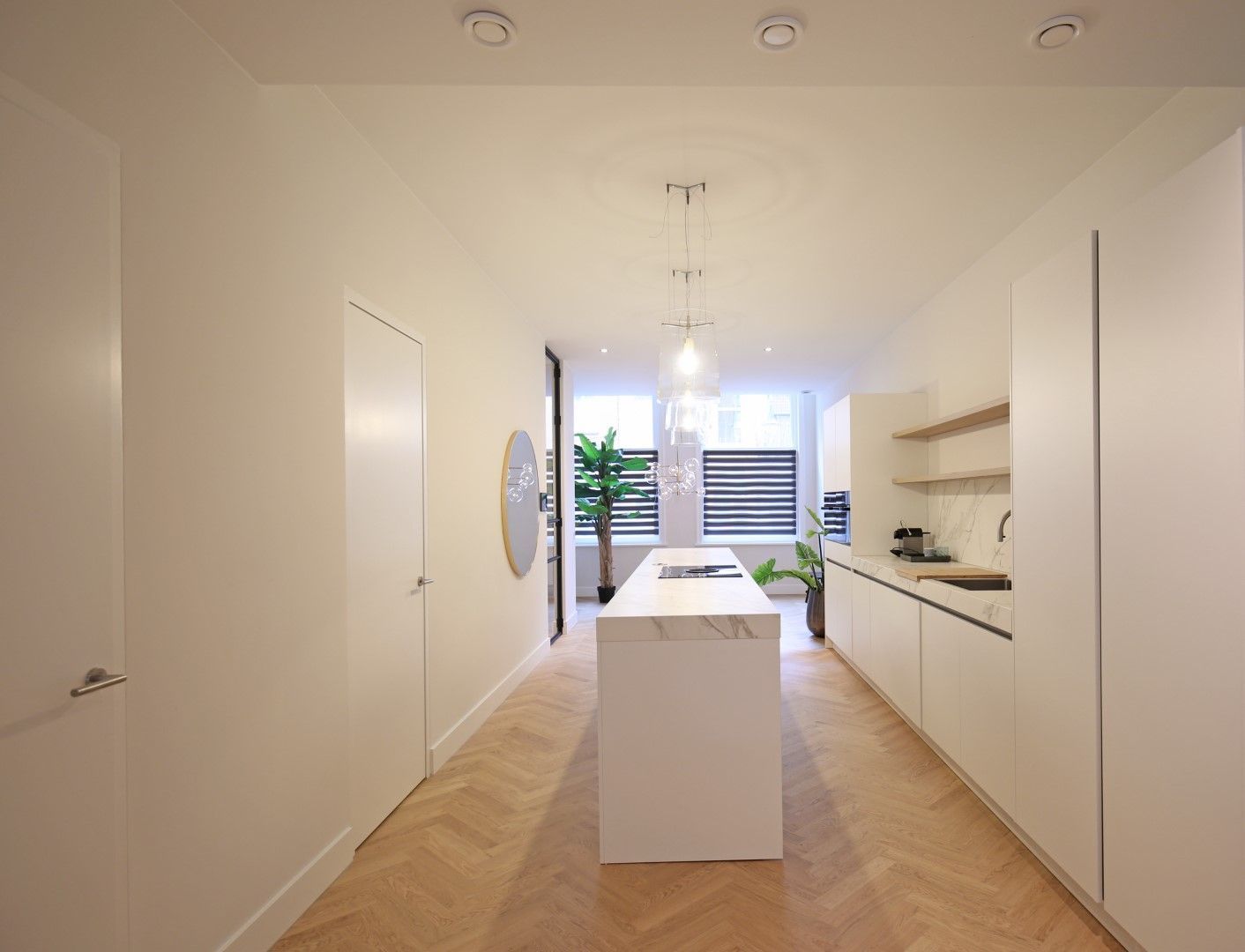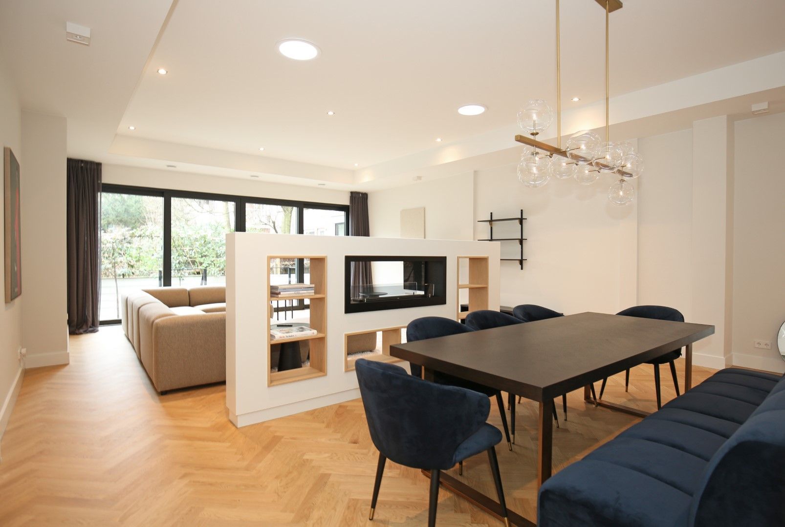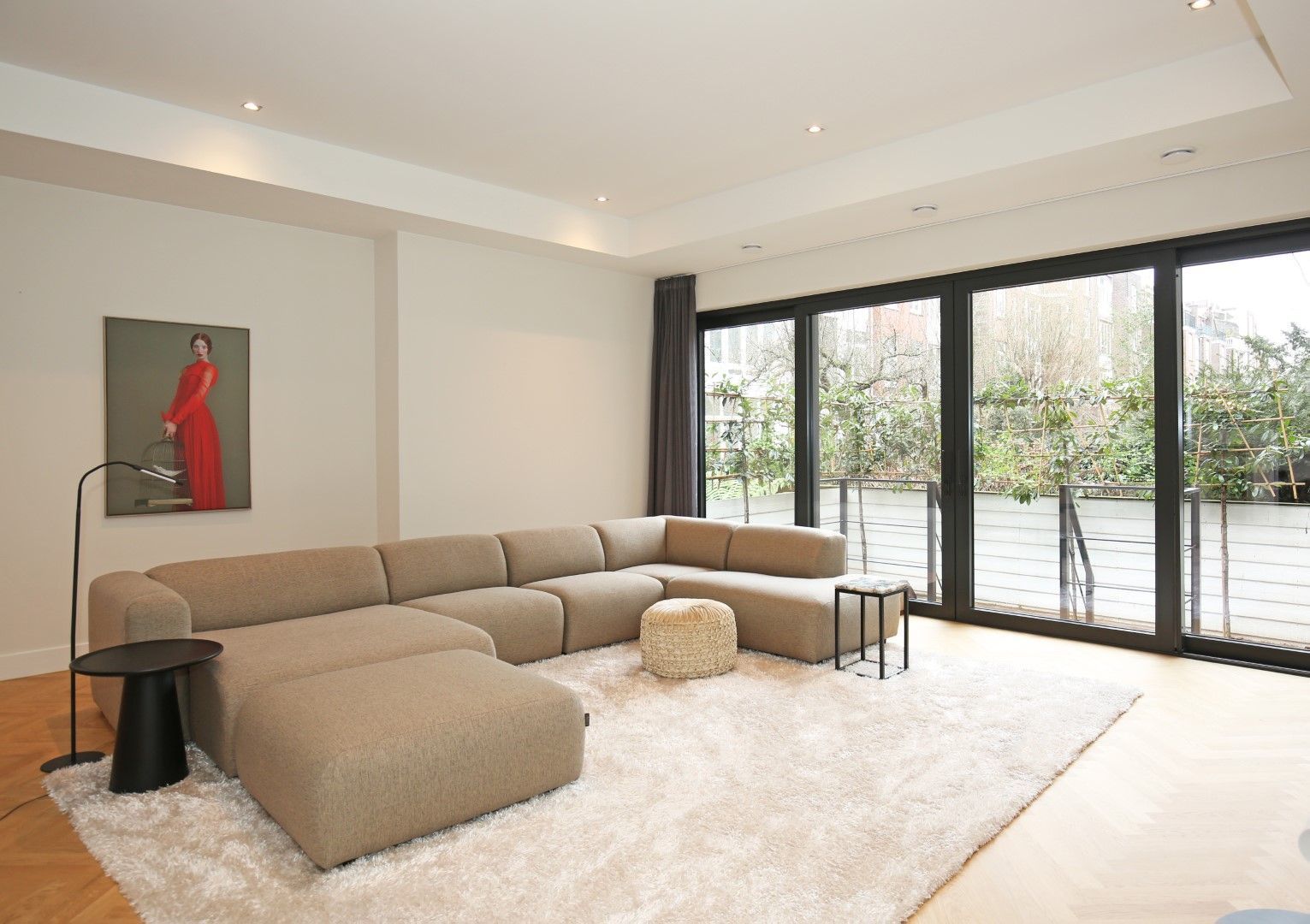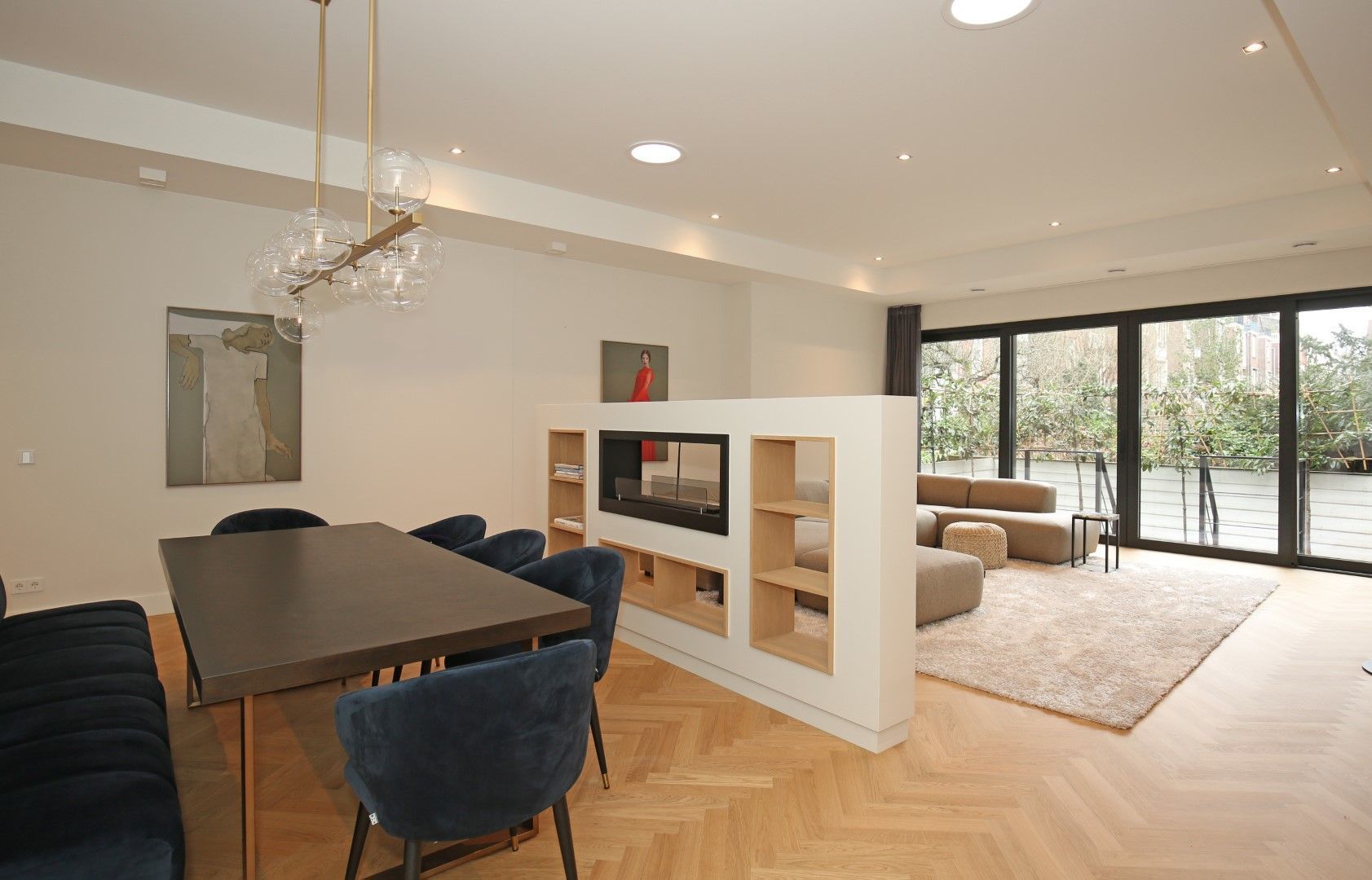 GENERAL FACILITIES/ LOCATION: This splendid newly built A+ label 231 m2 furnished or semi furnished 4 bedroom and 3 bathroom duplex apartment with patio garden is available (for a longer period as well). Located in the trendy Cornelis Schuytstraat with various lunch rooms, restaurants, boutique shops, 5 minutes walking distance to the Vondelpark. Supermarket at 500 meter distance (Organic supermarket at 150 meter). One of the most modern gyms of Amsterdam ‘Sport City’ at 50 meter distance. GENERAL LAYOUT: ENTRANCE: with marble floors, lift for upper apartments. GROUND FLOOR: entrance, hallway with built in wardrobes. Front side kitchen area with view on street. Luxurious kitchen with all kinds of equipment like wine cooler, Quooker for instant cooking water, large fridge/freezer, cooker with integrated exhaust, dishwasher, oven and microwave/oven. Separate large toilet with sink. Large storage space. Large dining area with room divider. GARDEN: Back living room with large sliding doors to patio garden. Open view to green city gardens. DOWNSTAIRS: to level with 4 bedrooms. In the back: Master bedroom with double bed and integrated wardrobe. Washer/dryer area. Master bathroom with large double sink. Walk in shower, toilet and bath. Walk in closet. Bedroom with double bed and TV on swivel arm. Hallway, separate toilet. Bathroom with walk in shower and sink. In the front: two large bedrooms, one with own bathroom with sink and shower, both with build in wardrobe. Technical installation. KEYWORDS: Newly Built A-location (most famous street in Amsterdam-Zuid) Energy label A+ Very well insulated Concrete flours (a rarity in Amsterdam) (high standard sound insulation) Apartment has an all-round Domotica system Central Climate Control system Underfloor heating Available furnished or semi furnished