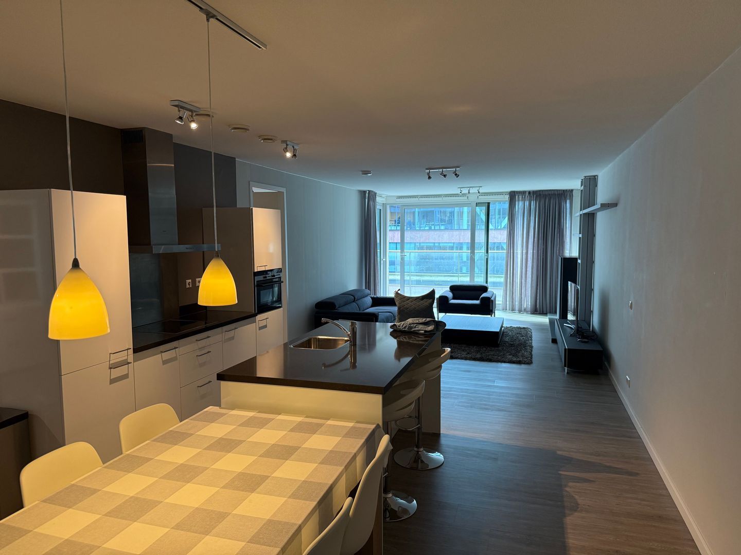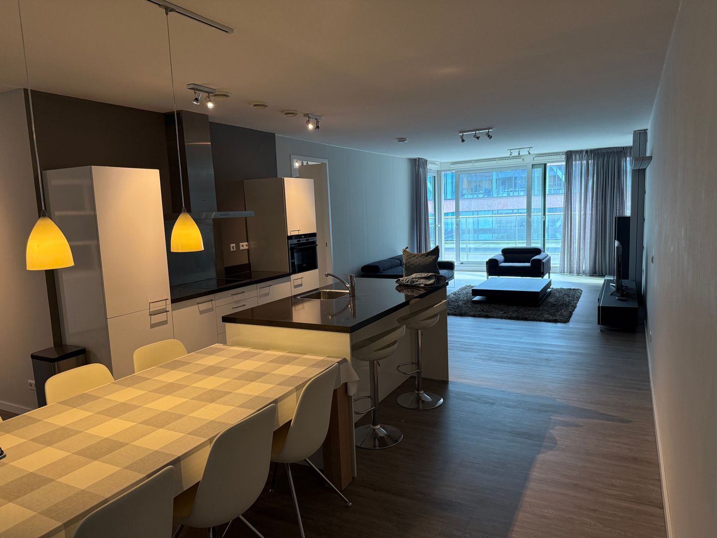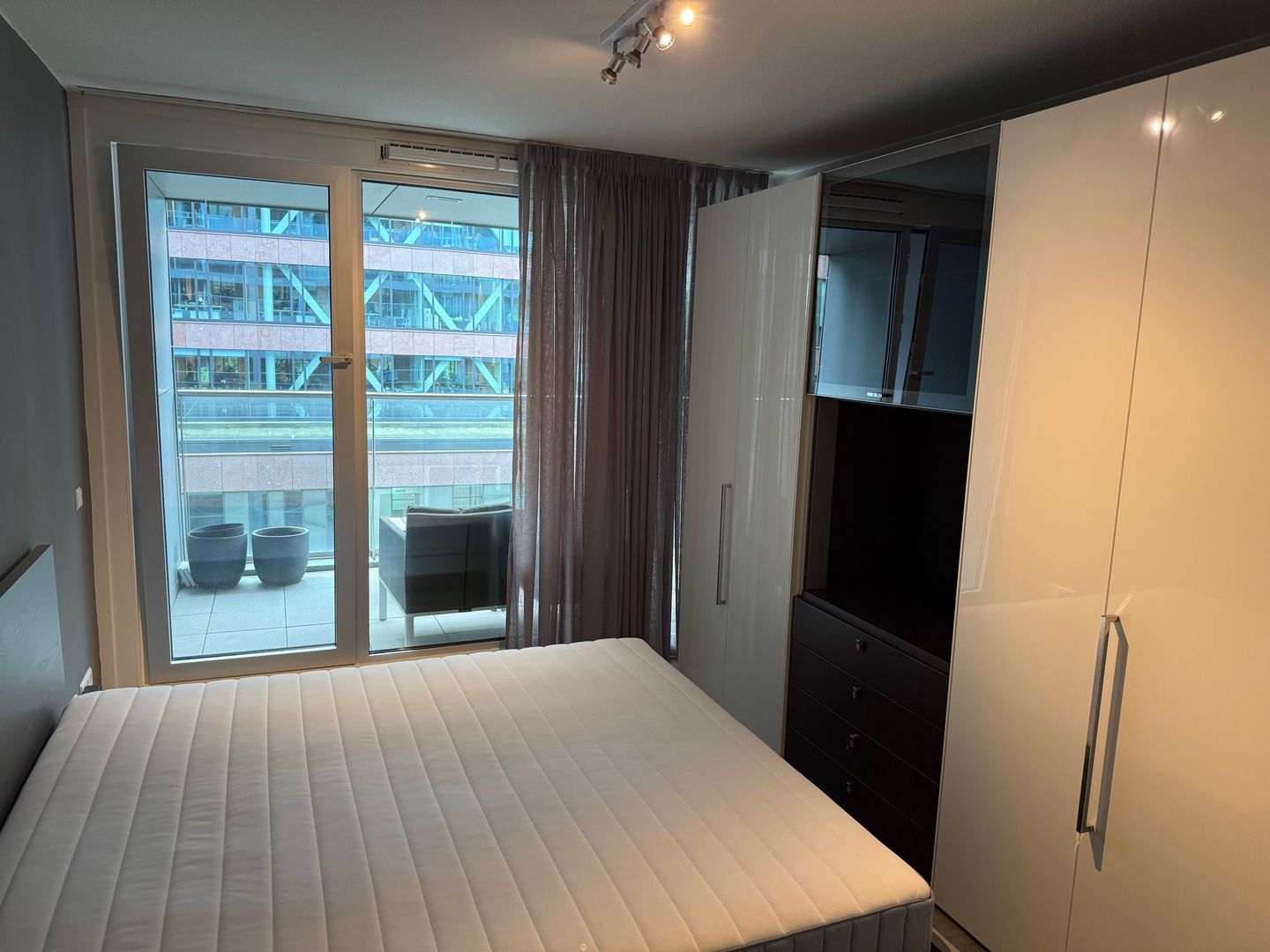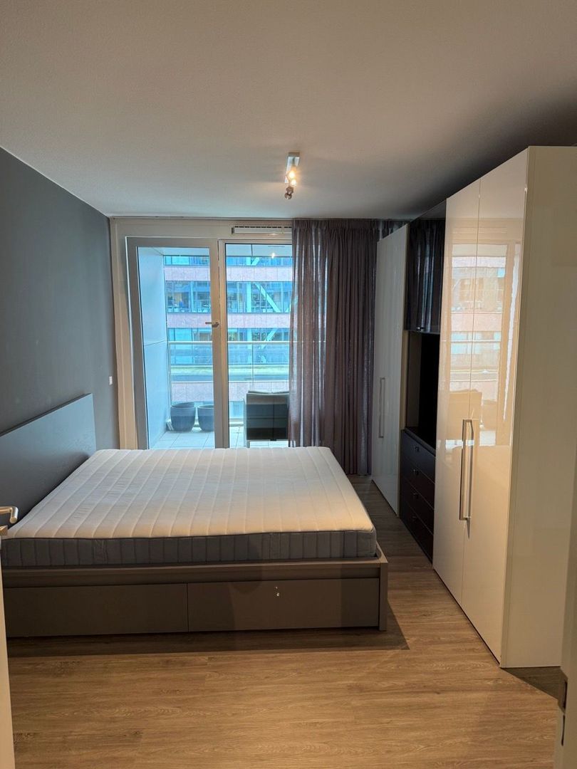 In the heart of the centre situated in newly built building called “ Markthal” which is the first Dutch indoor food market and has an underground parking garage. This project is a nice combination of architecture and ambiance. There are 120 apartments and 24 penthouses in the building and in the hall, there are all kind of shops, restaurants, supermarkets. 7 days a week there is a high verity of good food, restaurants, and supermarket available for you. Two days a week there is a weekly market on the square that is bordered to this building. Public transport is arranged perfectly; train and tram stop Blaak on 1 minute walking distance. Old harbour on 2 minutes walking distance, Gym on walking distance. Lay out, closed entrance, lift to 4th floor, apartment situated at the back of the building. Corridor, separate guest toilet. Light and bright living room with modern open kitchen with induction cooker, microwave, oven, dishwasher, fridge/freezer. Scullery with washing machine and drier. Large living room with sliding door to L shaped balcony. 1-bedroom, large bathroom with bath, double sink, separate shower, and toilet. There is a separate storage room available under the building. Parking place can be arranged for an extra monthly amount of € 130,00 per month extra.