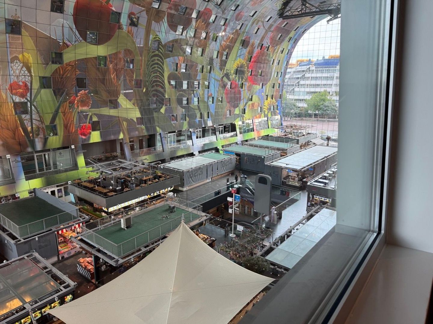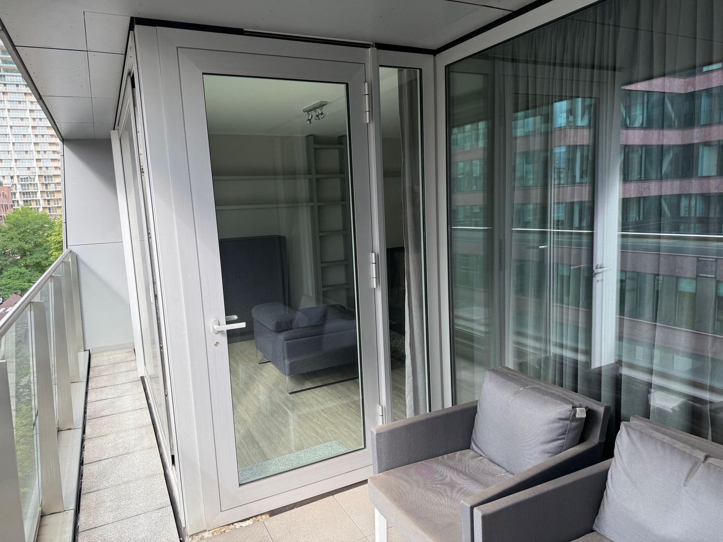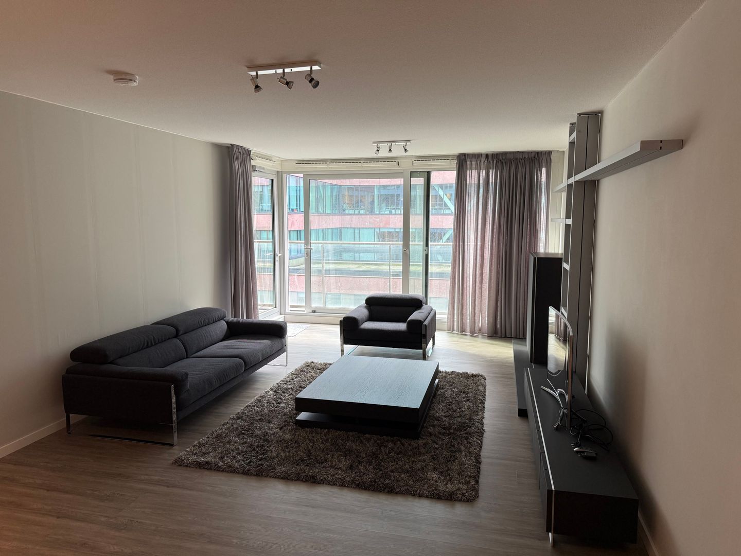 In the heart of the centre situated in newly built building called “ Markthal” which is the first Dutch indoor food market and has an underground parking garage. This project is a nice combination of architecture and ambiance. There are 120 apartments and 24 penthouses in the building and in the hall, there are all kind of shops, restaurants, supermarkets. 7 days a week there is a high verity of good food, restaurants, and supermarket available for you. Two days a week there is a weekly market on the square that is bordered to this building. Public transport is arranged perfectly; train and tram stop Blaak on 1 minute walking distance. Old harbour on 2 minutes walking distance, Gym on walking distance. Lay out, closed entrance, lift to 4th floor, apartment situated at the back of the building. Corridor, separate guest toilet. Light and bright living room with modern open kitchen with induction cooker, microwave, oven, dishwasher, fridge/freezer. Scullery with washing machine and drier. Large living room with sliding door to L shaped balcony. 1-bedroom, large bathroom with bath, double sink, separate shower, and toilet. There is a separate storage room available under the building. Parking place can be arranged for an extra monthly amount of € 130,00 per month extra.