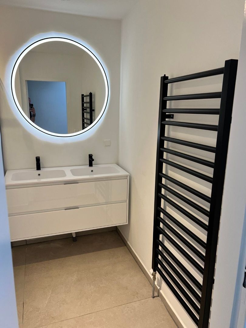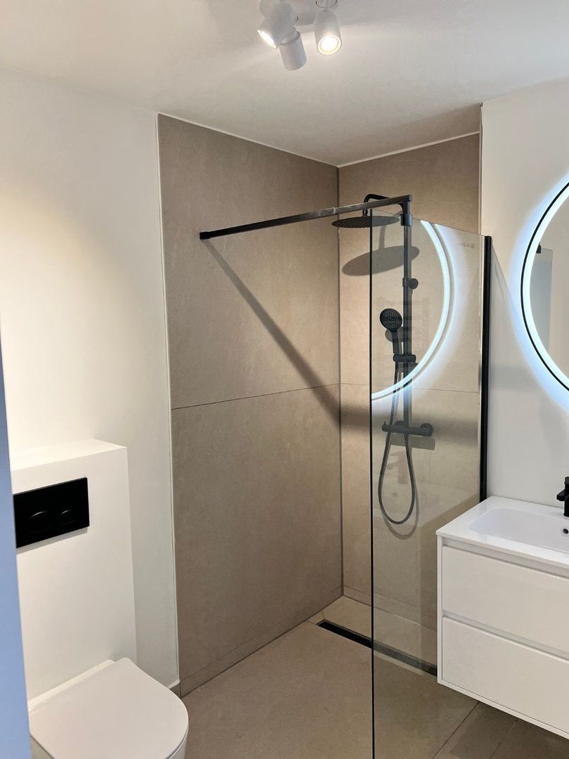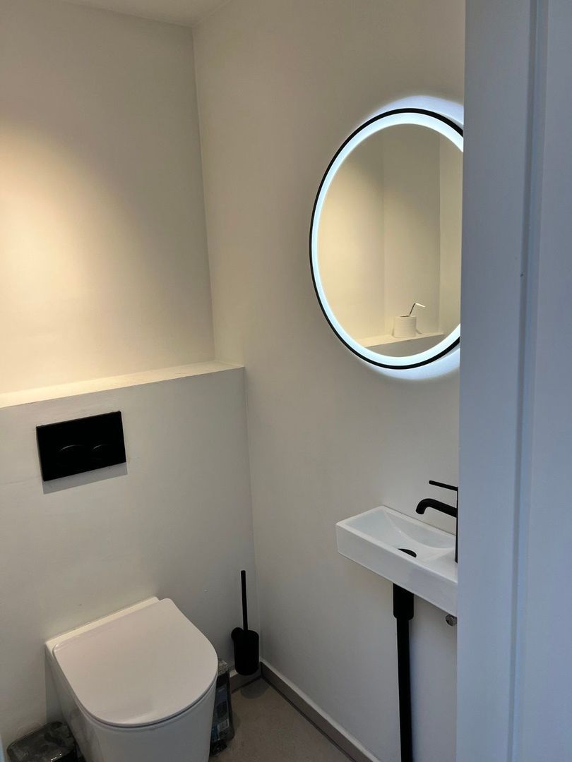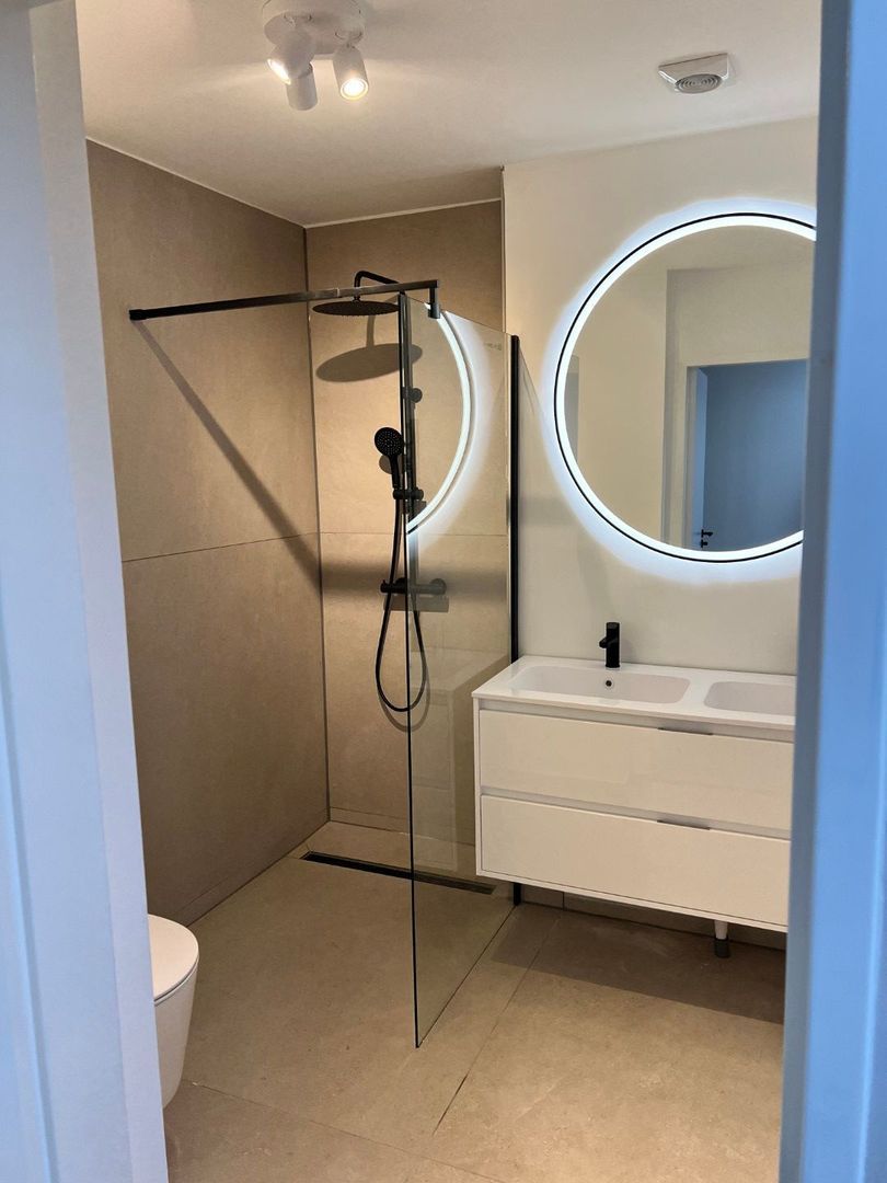 Indeling: entree, ruime hal, berging en meterkast. De bedrading is vernieuwd. Trap naar de eerste verdieping, hal, apart toilet met wastafel. Grote badkamer met inloopdouche, tweede toilet, dubbele wastafel en handdoekradiator.