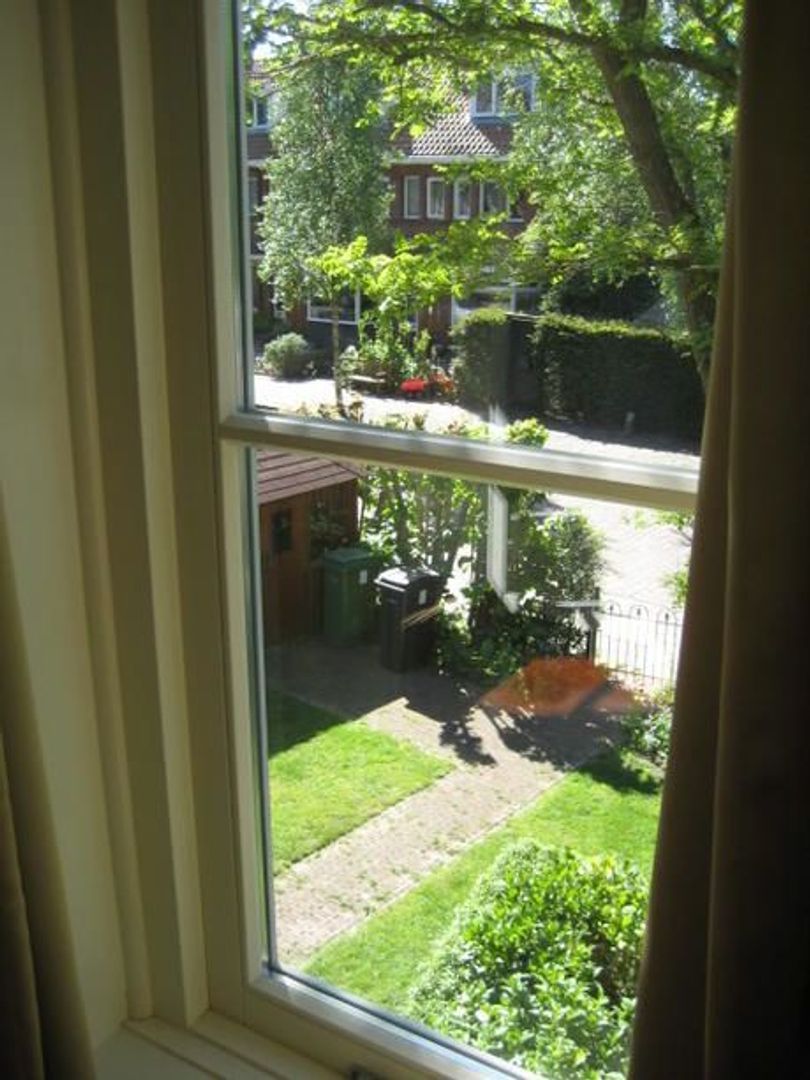 Layout; entrance, large toilet, light living/ dining room with nice view, wooden floor, half open totally fitted kitchen with dishwasher, oven, microwave, gas cooker, fridge/freezer etc. Door to nice closed part garden. 1st floor, with wooden floors, three bedrooms, one with large cupboard, one at the back, baby room. Bathroom with whirlpool and separate shower and washing stand ( also wooden floor). Separate toilet. 2nd floor with cabinet with washing machine and drier, a lot of storage space. room with large desk. Cozy family house in splendid neighborhood.