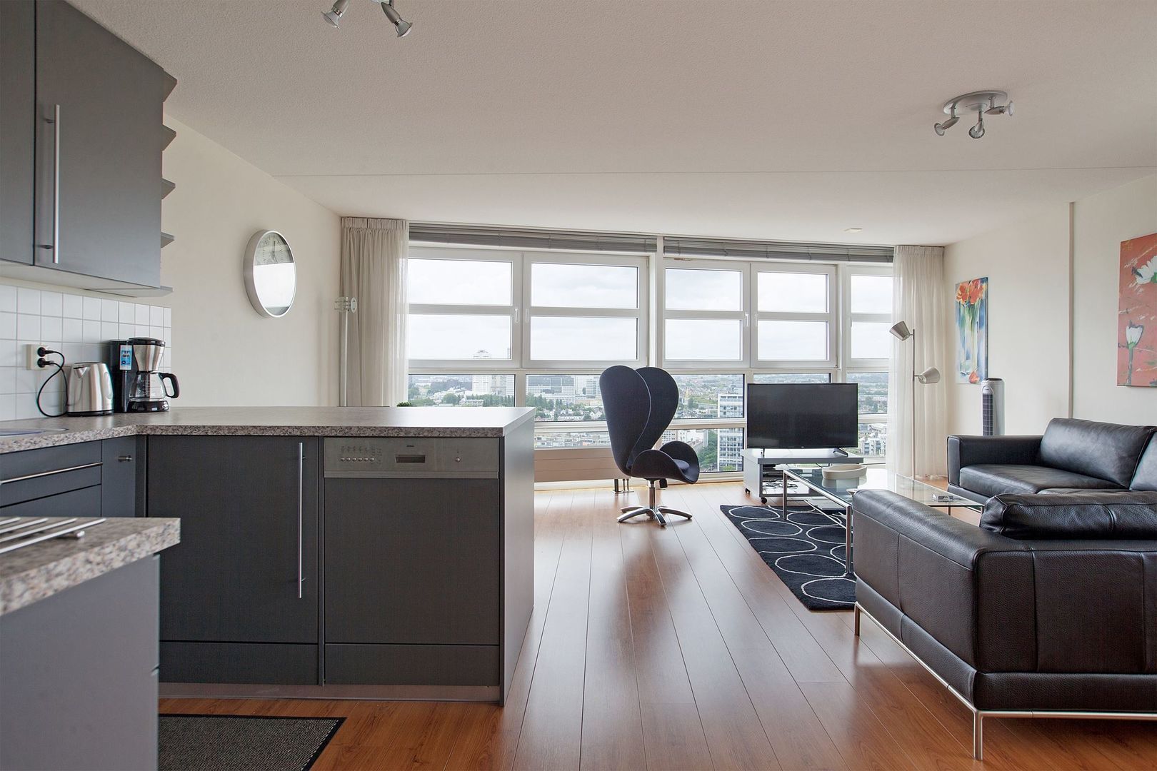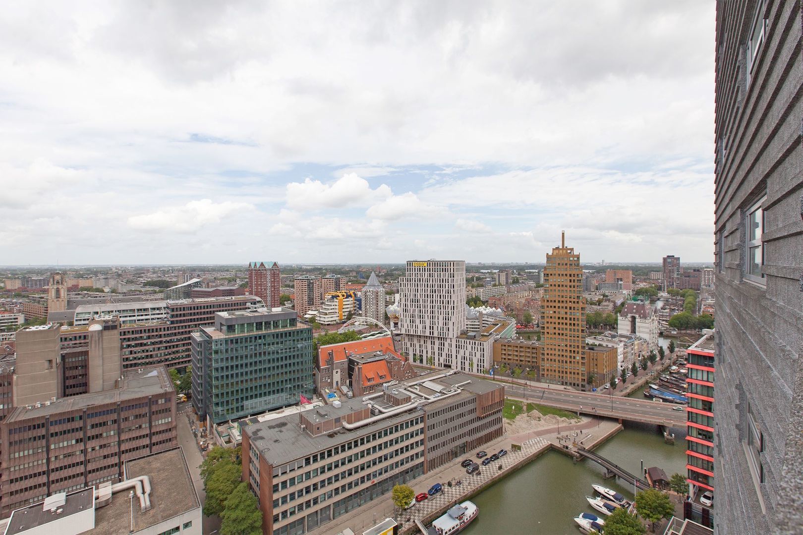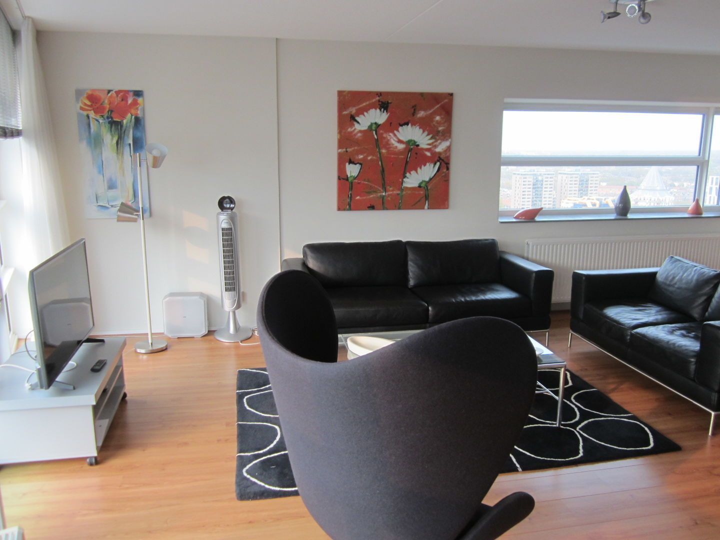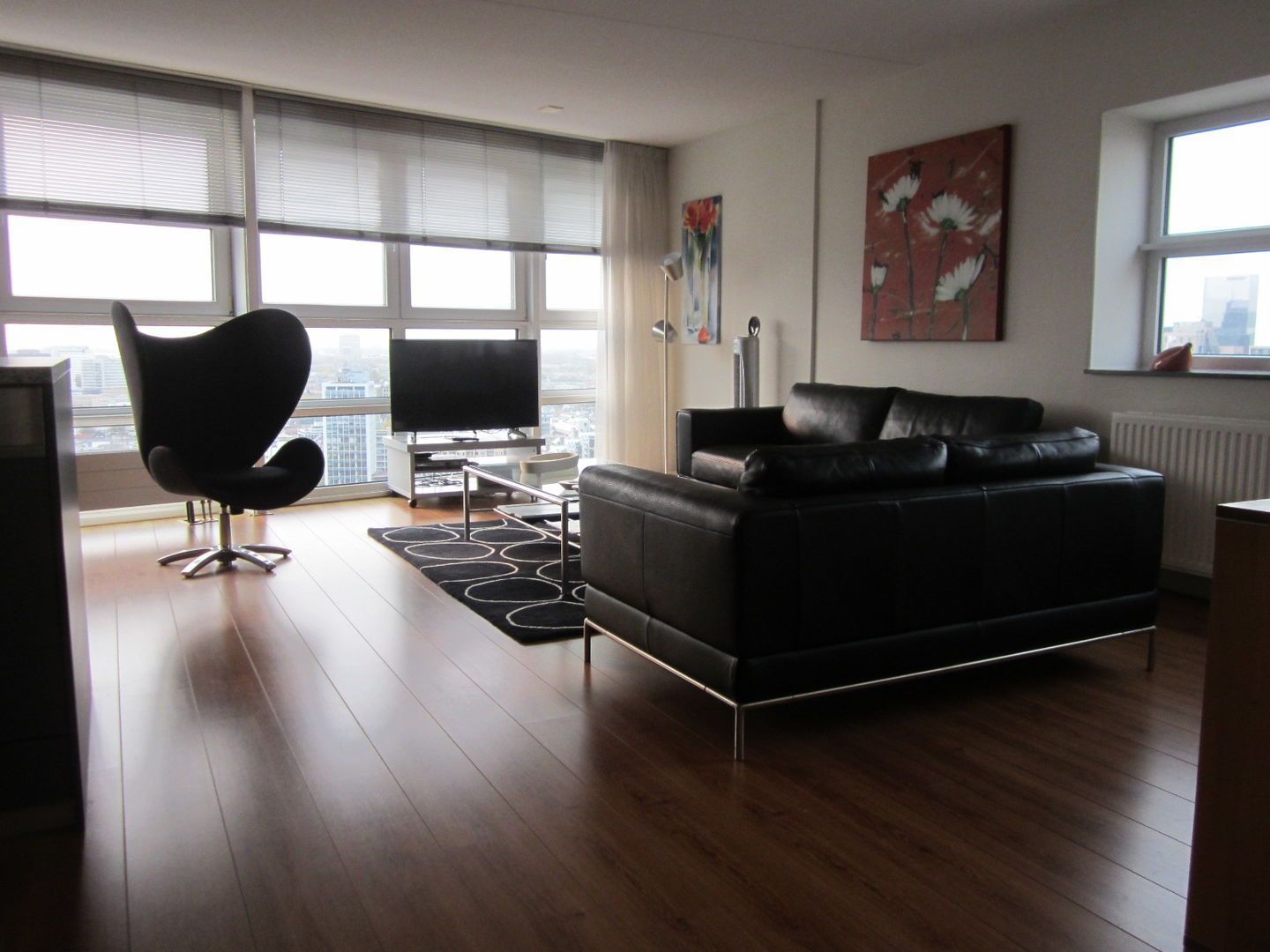 Nice fully furnished 2 bedroom property on the 25th floor with private indoor parking spot in the city center of Rotterdam, close to supermarkets, blaak station, bars, the ringroad, public transport and multinationals. lay out: entrance on the 25th floor by lift, hallway with access to all rooms; separate toilet on the hallway, living room with spectacular view overlooking the city, complete kitchen, 2 bedrooms , 1 with double bed and 1 with a single bed, bathroom with bath and shower cabin, room with washing machine. Ideal for couples or a small family. parking spot is €150 a month extra
